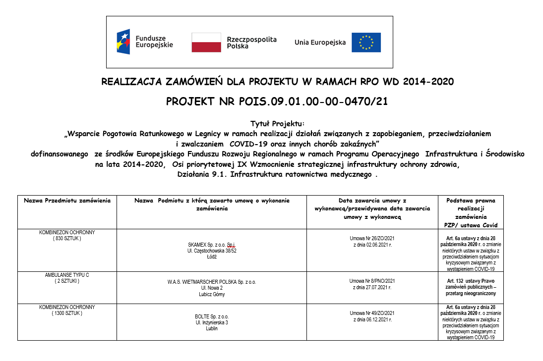 ORAZ ŚRODKÓW OCHRONY INDYWIDUALNEJ DLA POTRZEB POGOTOWIA RATUNKOWEGO W LEGNICY